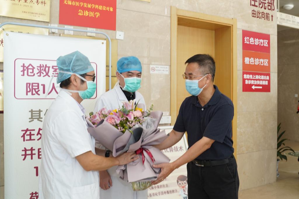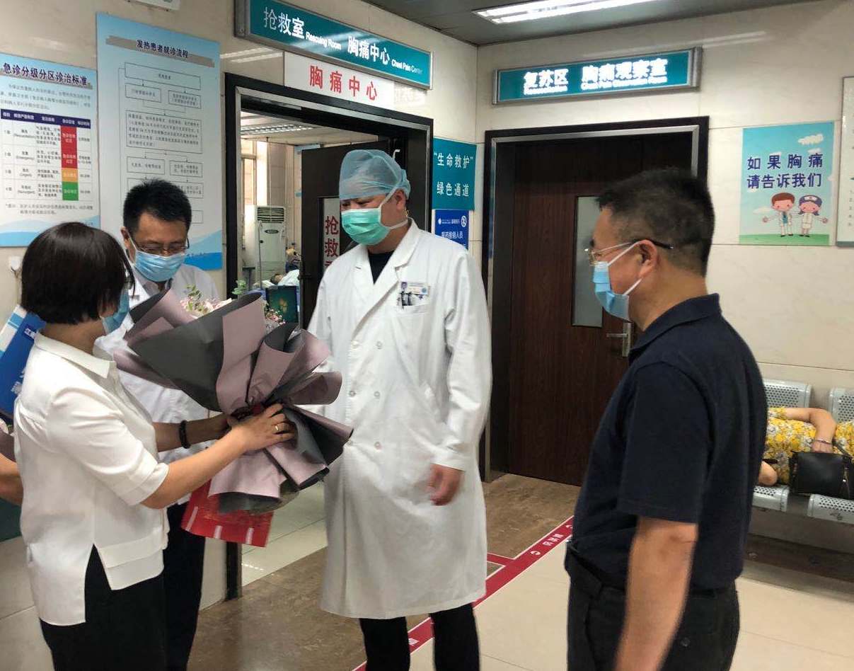 医学院领导一行走访了附院预检分疹处、急诊科,向在高温下仍然坚守岗位、救死扶伤的医生们致以节日的祝福和诚挚的问候,并向医生代表献上了鲜花。