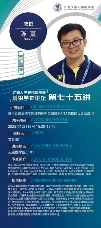 报告题目:基于合成生物学原理的体内自组装siRNA药物的设计及应用