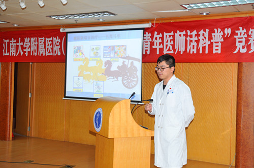 “气道异物卡喉?海姆立克的拥抱来帮您!”、“不吃或少吃主食可以更好的控制血糖的说法是错的”、“不是说淋巴结肿大了就一定是得了肿瘤!”、“感冒1个月不见好,警惕可能是过敏性鼻炎!”、“在血糖控制良好的前提下,适量的含糖量较低的水果对糖尿病患者是有益的”、“多食用骨头汤并不能解决骨质疏松患者补钙的需要”、“85%~90%的肺癌与吸烟有关,吸烟越多,患癌风险越大”……16位选手用生动形象、通俗易懂的语言为我们带来了一场科普“盛宴”,台下观众听得津津乐道,参赛选手纷纷表示此次活动有助于以赛代练,提高青年医师科普能力,让老百姓更全面更浅显的了解医学专业知识。